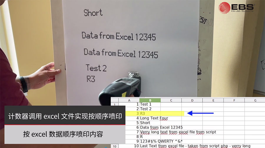 EBS-260智能手持噴碼機升級后,可實現(xiàn)的功能之一是:在計數(shù)器中輸入起始序號,即可從起始數(shù)據(jù)開始,按順序噴印Excel表中的數(shù)據(jù)。