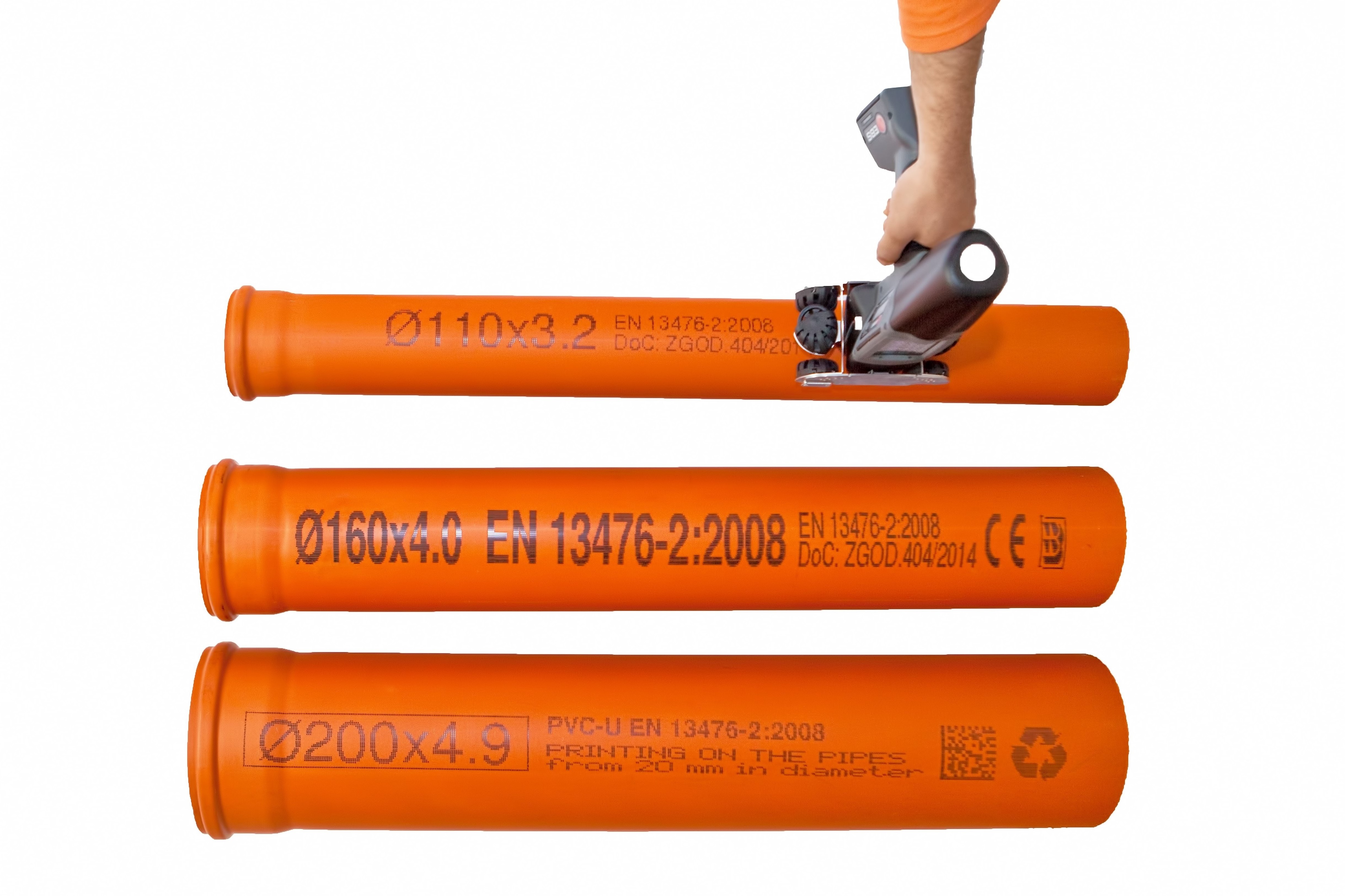 聚丙烯管(PP管)具有多種直徑不一的管材,EBS手持噴碼機能為其帶來快捷且標準化的標識方案,通過加裝的支架,可以根據不同管徑進行調整,讓每一次噴印達到理想效果。
