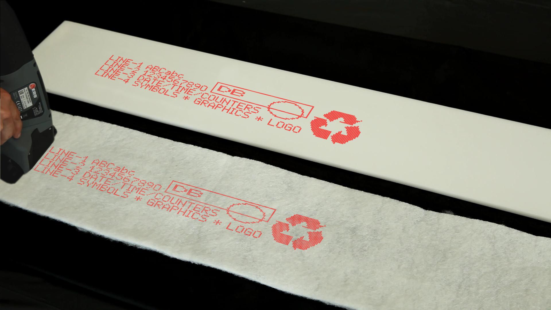 EBS噴碼機可用于各種類型的珍珠棉、海綿、泡棉的標識噴碼。可以在這些產品上噴印清晰,美觀的品牌信息、規格型號、尺寸大小、物流等信息。