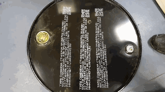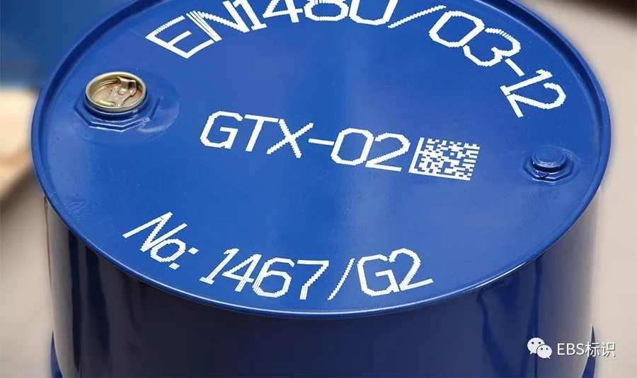 EBS高亮白墨在藍色金屬桶上噴碼效果