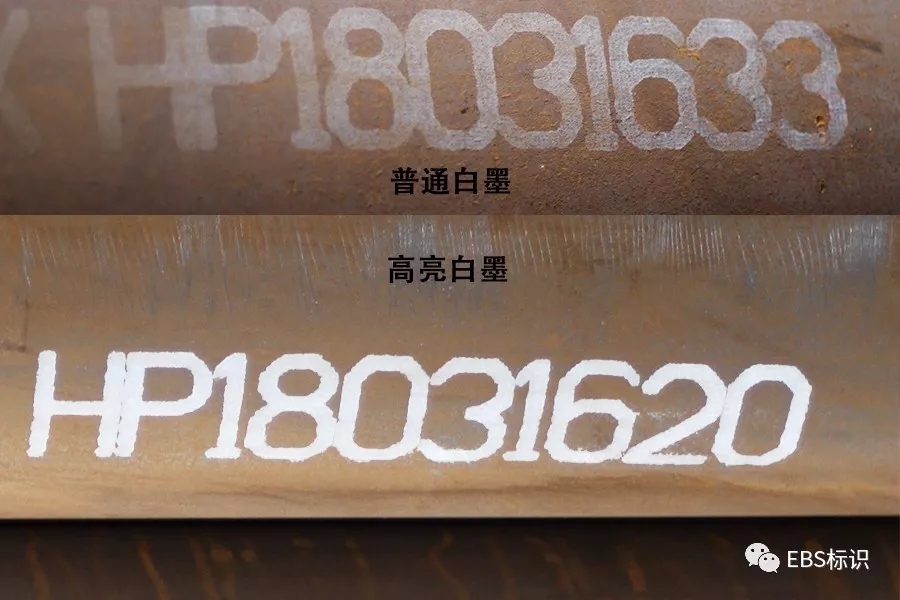 普通白墨與高亮白墨在生銹鋼材上噴碼對比效果