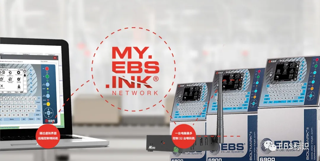 通過“my.ebs.ink®” 應用程序,一臺電腦(聯網設備)最多可遠程控制32臺噴碼機,可實時了解各個噴碼機狀態和獲取噴碼機報告,通過報告了解和利用噴碼機的優勢并更有效地規劃整體生產過程。同時,可以為不同的用戶組分配不同的權限級別,更好地控制對噴碼機的訪問,實現現代化工廠的系統化和集中化管理,提高生產效率和增強安全性。