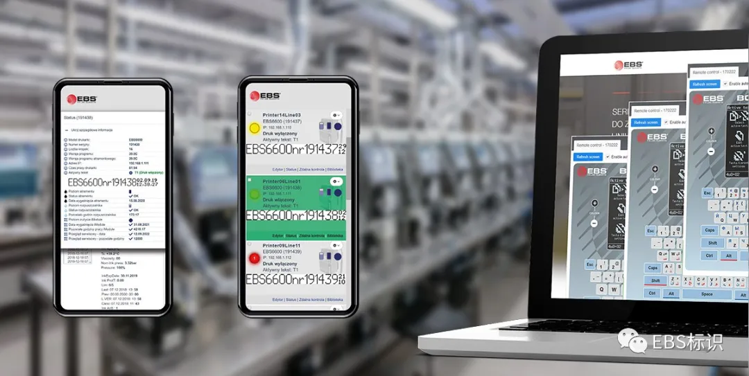 通過遠程控制應用程序“my.ebs.ink®”,相關人員可以及時讀取噴碼機中的完整報告并做出徹底診斷,例如故障報告等。若出現故障情況,特別是需要廠家協助維護的情況,在人力無法及時到達的情況也能快速將噴碼機故障情況進行完整反饋,實現遠程技術支持,既節省維護時間和成本,又能快速恢復生產,提高生產效率。