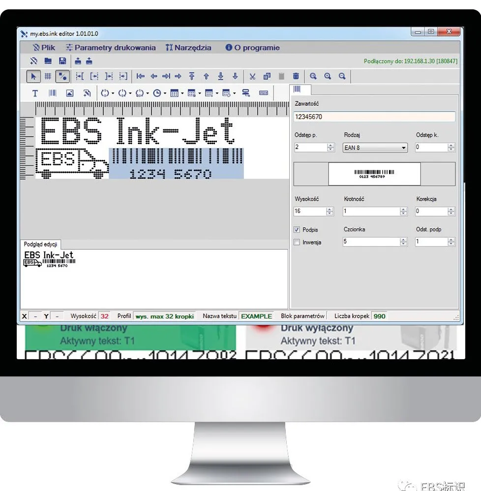 通過電腦桌面遠程控制應用程序“my.ebs.ink®”,可以隨時遠程的為噴碼機創建新的項目文本并立刻發送給噴碼機執行噴印。可隨時更改、存檔和刪除噴碼機庫中的文本項目,對噴印工作進行及時調整。無需到達現場即可創建、修改項目,更加靈活便利。