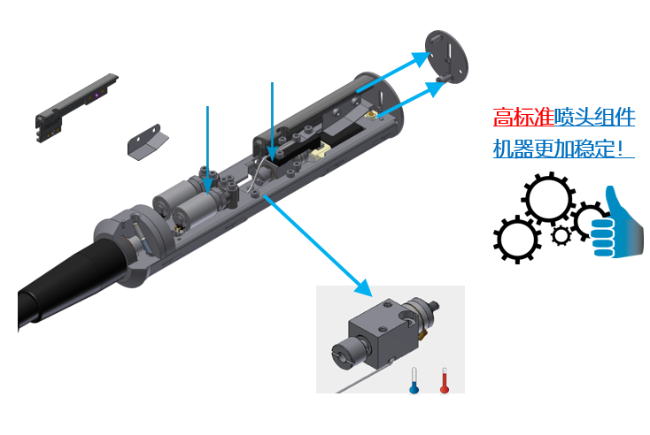 EBS小字符選用配件以24小時(shí)連續(xù)穩(wěn)定生產(chǎn)為標(biāo)準(zhǔn),壓支架-更穩(wěn)定,更好的隔離PP;高壓電纜-軍用無屏蔽級(jí)別和100M?電阻器;收槽-可拆卸式設(shè)計(jì);使高壓偏轉(zhuǎn)板固定更穩(wěn)定;噴槍-可高溫下連續(xù)工作的設(shè)計(jì),24小時(shí)穩(wěn)定生產(chǎn)。